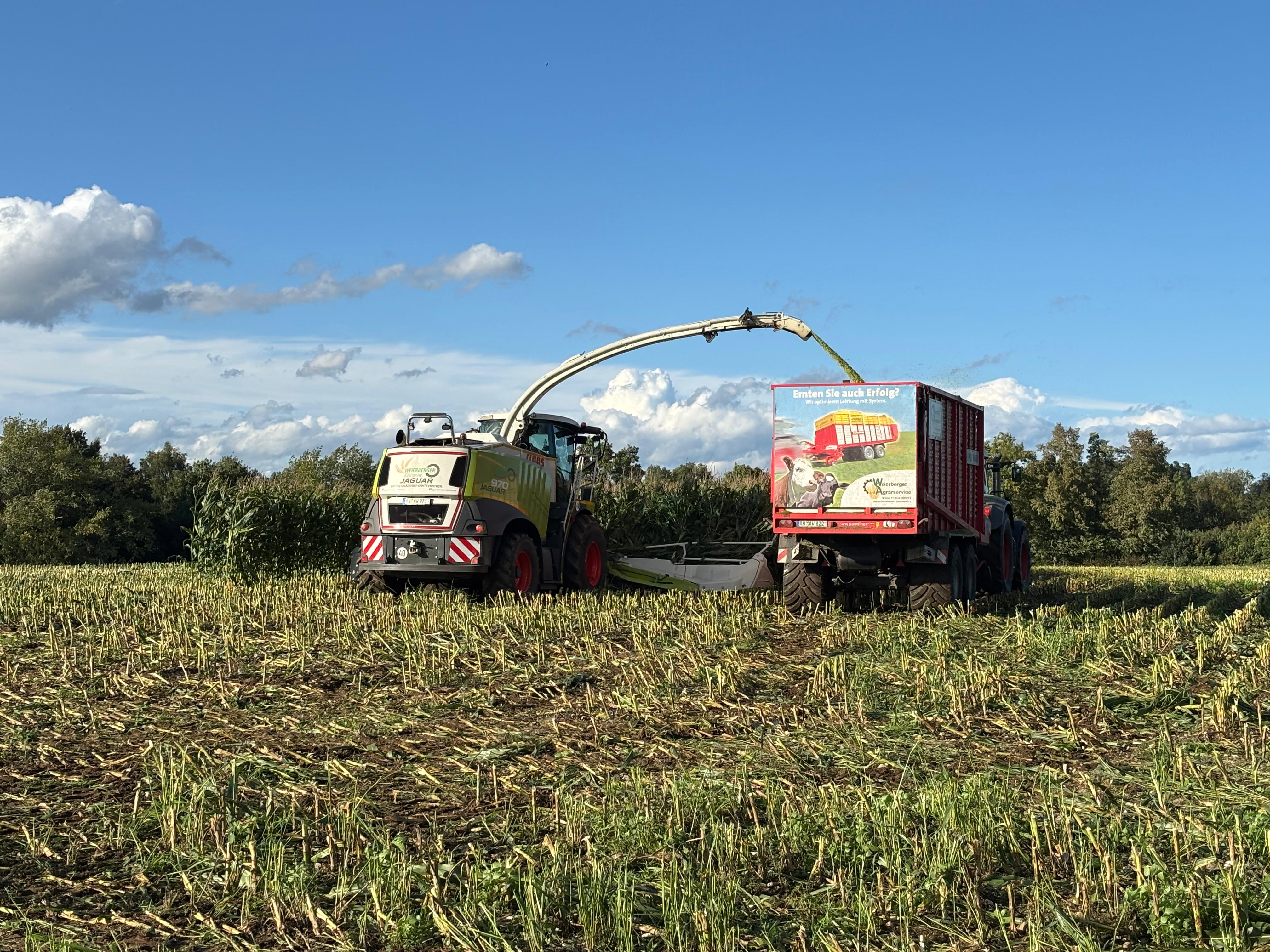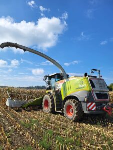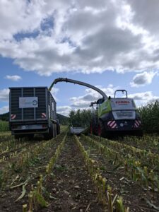 Wir häckseln mit speziellen Maschinen und einem sauberen Monitoring, um den Mais optimal zu zerkleinern und in Silage fähige Stücke zu schneiden. Die anschließende Lagerung in Silage schafft eine lange Haltbarkeit.