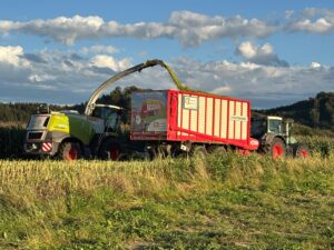 Zusätzlich bieten wir Ihnen gerne die weiteren Arbeitsschritte der Silier-Kette an: Vom Häckseln über das Abfahren bis hin zur Silage-Verdichtung. Sprechen Sie uns gerne darauf an!