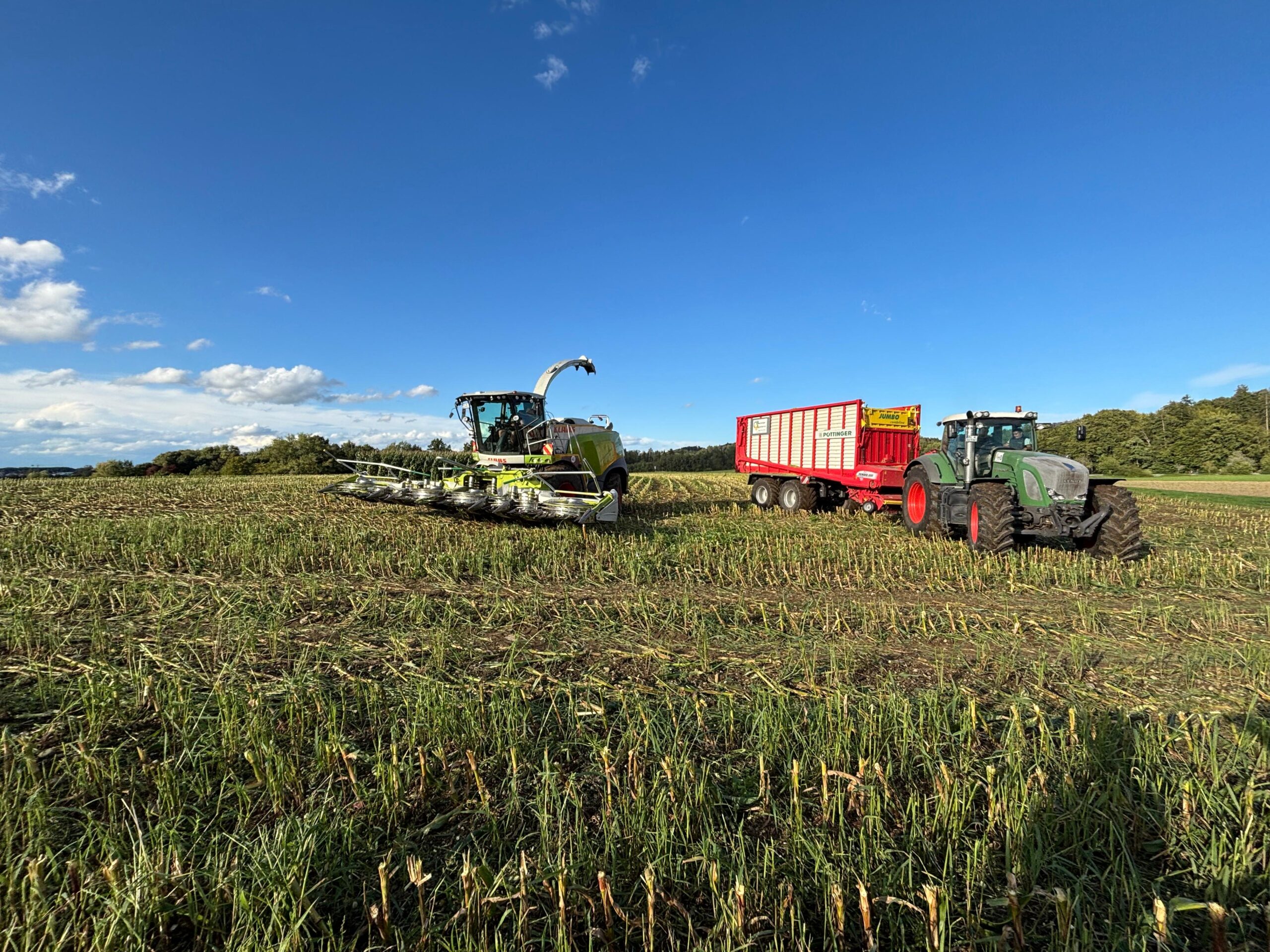 Zusätzlich bieten wir Ihnen gerne die weiteren Arbeitsschritte der Silier-Kette an: Vom Häckseln über das Abfahren bis hin zur Silage-Verdichtung. Sprechen Sie uns gerne darauf an!